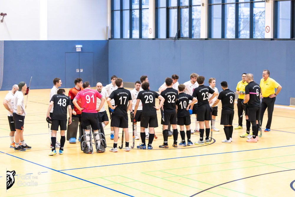 Nach dem Wechsel schaffen wir es zunächst, das Spiel weiter zu lenken: Erik stellt in der 34. Minute auf 4:1, alles sieht nach dem nächsten Sieg aus. Doch dann kippt die Partie komplett. Der SCC verkürzt erst auf 2:4, dann auf 3:4 und nutzt jede kleine Unsauberkeit von uns gnadenlos aus. Gleichzeitig wird das Spiel intensiver, es hagelt Karten – unter anderem auch für Flo und Erik – und wir verlieren nach und nach die klare Linie. Charlottenburg dreht das Spiel mit weiteren Treffern zum 5:4 und 6:4, bevor Chris kurz vor Schluss noch zum 6:5 trifft.